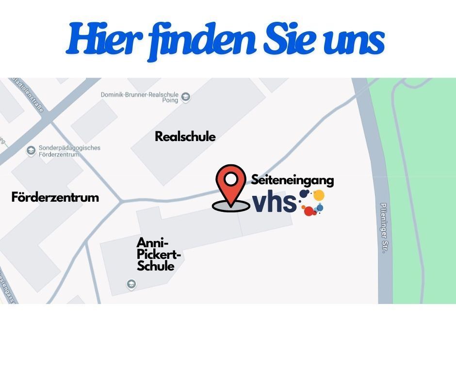 Bitte am Kursort den Seiteneingang auf der Nordseite nutzen und auf die Dozentin warten.